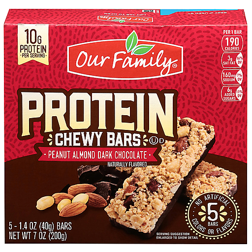 Our Family Protein Peanut Almond Dark Chocolate Chewy Bars 5 ea
